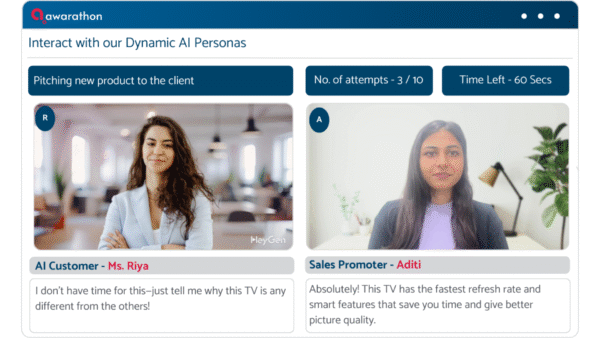 Awarathon is a leading AI-powered sales coaching platform that is transforming employee training and upskilling across industries. It is trusted by top brands in India, Philippines, Singapore, and Vietnam, including Samsung, Godrej, Aditya Birla Capital, SBI Life, TATA AIA, and Dr. Reddy’s.